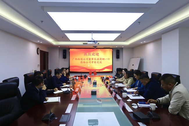 10月18日上午,廣西路冠科技投資發展有限責任公司董事長潘莉娜來公司洽談合作,公司黨委書記、董事長盛明宏接待了潘莉娜一行,并于9樓會議室主持召開座談會。