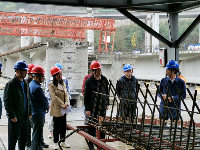 干戈一行首先赴項目施工現場實地查看了四號梁場、九溝特大橋、秋林隧道等施工點的生產建設情況及項目駐地黨團建設情況,并在項目部四樓會議室詳細了解了項目生產進度、質量、安全環保等方面的工作開展情況,重點聽取了“三號聯創”創建工作的匯報。