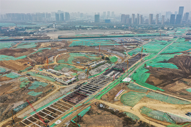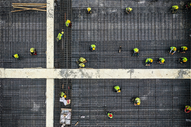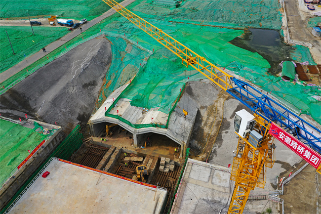 在安徽路橋集團(tuán)承建的濱湖科學(xué)城花園大道項目工地上,記者看到塔吊林立,車輛來回穿梭,機(jī)器轟鳴作響,幾十名施工人員正緊鑼密鼓地進(jìn)行中板鋼筋綁扎作業(yè)。