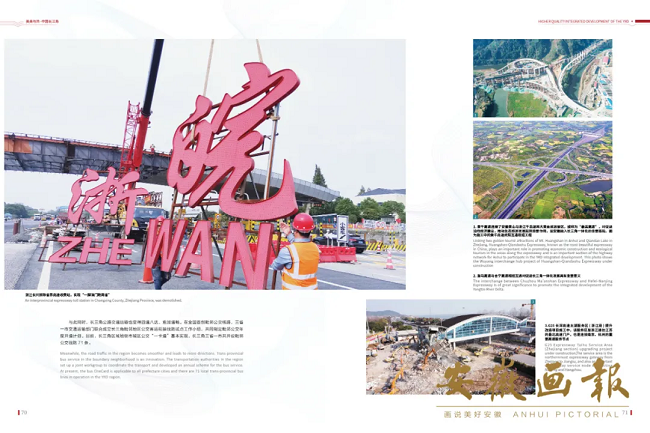 ▲在長三角區域合作辦公室以及安徽省委宣傳部的指導下,由安徽畫報社出品的中宣部“走出去”外宣項目——《美美與共•中國長三角》長三角一體化發展戰略實施三周年紀實畫冊(中英文)日前重磅首發。安徽路橋集團承建黃千高速02標畫面入選畫冊(右上)。
