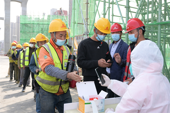 “您好,請(qǐng)出示您的健康碼和行程碼”走進(jìn)項(xiàng)目現(xiàn)場(chǎng),項(xiàng)目部嚴(yán)格落實(shí)項(xiàng)目封閉式管理和單口進(jìn)出制度。項(xiàng)目部實(shí)行施工現(xiàn)場(chǎng)分區(qū)管理,各進(jìn)出口大門配備疫情專管員,每日組織疫情防控專員對(duì)全體勞務(wù)人員進(jìn)行雙碼核查、測(cè)溫、登記,對(duì)于黃碼及行程碼帶“*”人員,及時(shí)上報(bào)社區(qū),與屬地及主管單位形成聯(lián)動(dòng)。同時(shí),安排專人每日對(duì)工人生活區(qū)、辦公區(qū)、宿舍區(qū)等人員聚集場(chǎng)所進(jìn)行消殺。此外,積極響應(yīng)政府號(hào)召,每周組織兩次全員核酸檢測(cè),確保疫情防控封閉管理、不留死角。