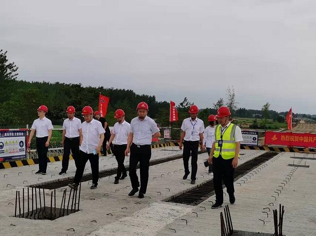 6月23日,建工控股黨委委員、紀委書記、監察專員王汪苗赴路橋集團阜淮高速03標項目調研。