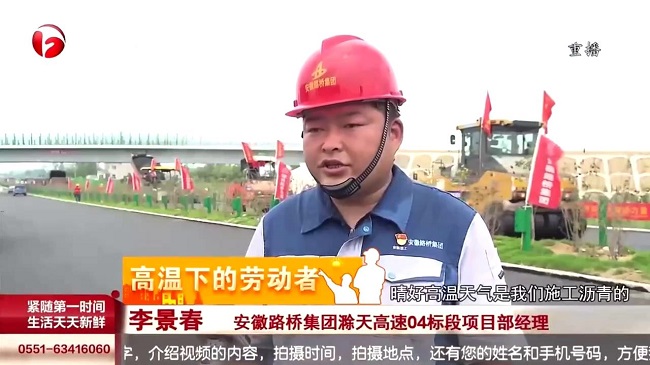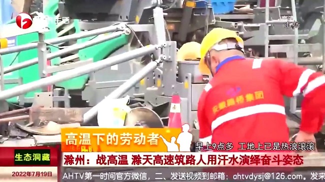 7月19日晚,安徽電視臺《第一時間》欄目以《滁州:戰高溫 滁天高速筑路人用汗水演繹奮斗姿態》為題,報道了安徽路橋集團滁天高速04標項目建設者戰高溫、搶進度,加班加點推進項目建設。