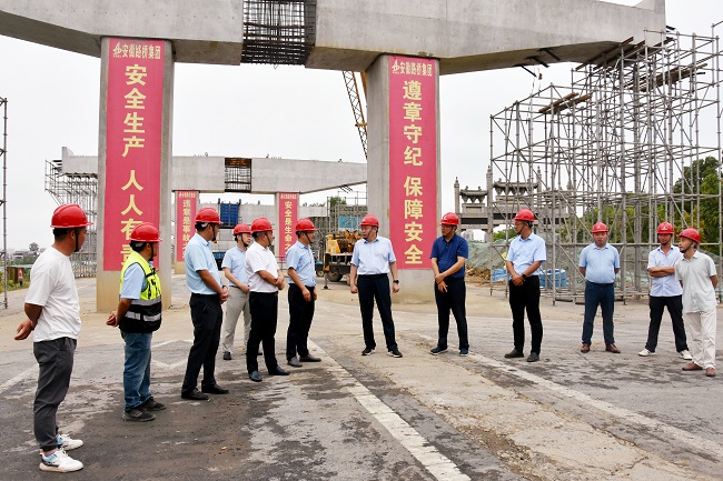 任杰一行深入施工現場,實地查看了項目路基、橋梁的建設現狀,詳細了解了項目規劃、生產進度、安全環保等情況。任杰強調,要進一步統籌好工程進度與質量安全管理工作,嚴把工程質量關,緊繃安全生產弦,確保安全生產全面受控。
