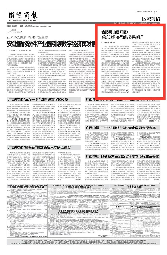 11月9日,由中華人民共和國商務部主辦,商務部直屬的國際商報社發行的國家級報紙《國際商報》以《合肥蜀山經開區:總部經濟“潮起揚帆”》為題,展現路橋集團在合肥蜀山經開區大力支持建筑業總部經濟發展的背景下,發展成效卓著。