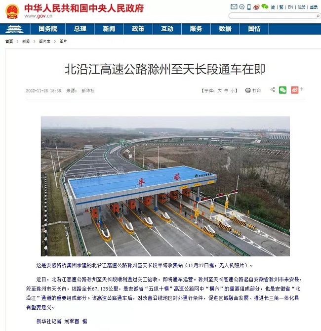 12月2日11點58分,由安徽路橋集團參建的北沿江高速公路滁州至天長段正式通車!