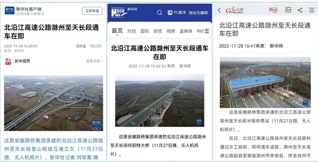 中央人民政府門戶網(wǎng)站、新華社、光明網(wǎng)、中國青年網(wǎng)、中安在線(中英文兩版)、《市場星報》、《馬鞍山日報》、《新余日報》等國家級、省、市級主流媒體先后圍繞路橋集團建設(shè)成果、為通車所付出的辛勤努力予以重點呈現(xiàn)。